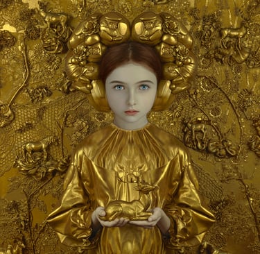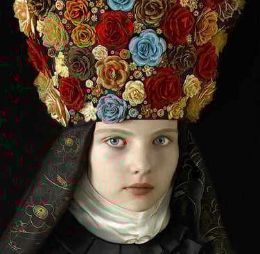 Adriana Duque es una fotógrafa colombiana reconocida por sus retratos de niñas en escenarios cuidadosamente construidos que evocan tanto la pintura renacentista como la fantasía. Su trabajo combina elementos de la historia del arte, como el uso de iluminación barroca y detalles rococó, con símbolos contemporáneos que abordan temas como el colonialismo y los estereotipos sociales. Las imágenes de Duque se destacan por su teatralidad, con un enfoque en la realeza infantil y el lujo, creando una crítica sutil a las estructuras de poder y a la sociedad contemporánea