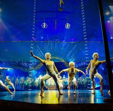La dirección de arte del Circo del Sol es un elemento clave que ha definido su éxito. Cada espectáculo es una obra maestra visual, cuidadosamente diseñada para transportar al público a un universo completamente nuevo. El color, la luz y el vestuario juegan un papel esencial en la narrativa, generando una experiencia inmersiva que conecta con las emociones de la audiencia. Desde la extravagancia y los detalles barrocos de O hasta la psicodelia visual de The Beatles LOVE, cada espectáculo cuenta con una estética única que marca el tono y el carácter de la historia. Esta sofisticación artística ha posicionado al Circo del Sol como una referencia indiscutible en la dirección creativa dentro de las artes escénicas.
