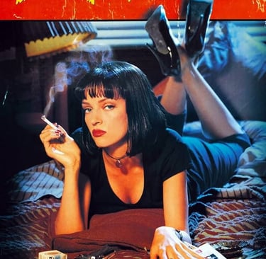 El póster de Pulp Fiction es una obra de arte del cine moderno que encapsula perfectamente el espíritu retro y desenfadado de la película. Mostrando a Uma Thurman como Mia Wallace, recostada en una cama con una revista y un cigarrillo, el póster evoca el estilo pulp de los años 50 con su estética de novela barata y colores llamativos, un guiño a las referencias culturales que Tarantino incluye en su película.