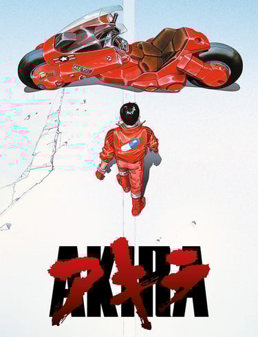 El póster de Akira, una de las películas más influyentes del anime, es tan icónico como el film mismo. Presenta a Kaneda, el protagonista, caminando hacia su icónica motocicleta roja, en una escena cargada de intensidad visual. El contraste entre el entorno urbano desolado y la figura solitaria de Kaneda transmite la inmensidad de los temas tratados en la película: el poder, la rebelión y la decadencia de un mundo futurista. Este póster ha llegado a simbolizar la revolución del anime a nivel mundial.