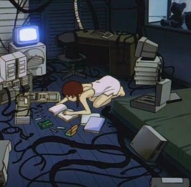 La historia sigue a Lain Iwakura, una adolescente aparentemente común que comienza a sumergirse en "The Wired", un sistema de comunicación global similar a Internet. A medida que se adentra más en este mundo digital, las líneas entre lo real y lo virtual comienzan a desdibujarse, llevándola a cuestionar no solo su identidad, sino también la naturaleza misma de la realidad y de la humanidad. La narrativa no lineal y cargada de simbolismos de la serie invita a la reflexión sobre el impacto de la tecnología en nuestras vidas, décadas antes de que estas cuestiones fueran tan centrales como lo son hoy.
