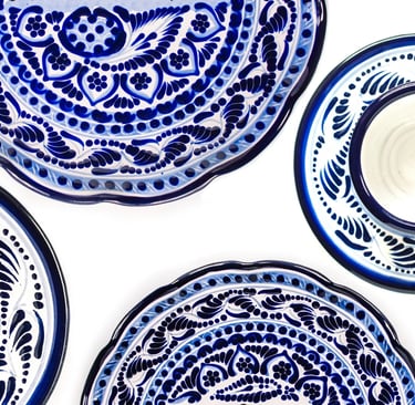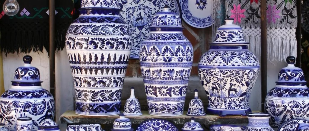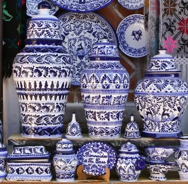 Las Talaveras mexicanas son una de las expresiones más ricas y emblemáticas del arte popular en México. Este tipo de cerámica, originaria de Puebla, se caracteriza por sus intrincados diseños pintados a mano y sus colores vibrantes, con predominio de azul, amarillo y blanco. Herederas de una tradición que mezcla influencias indígenas y españolas, las Talaveras surgieron en el siglo XVI tras la llegada de alfareros europeos que introdujeron nuevas técnicas y estilos. Con el tiempo, estas piezas se convirtieron en un símbolo de identidad regional, siendo utilizadas tanto en utensilios domésticos como en decoraciones arquitectónicas de iglesias y edificios coloniales.